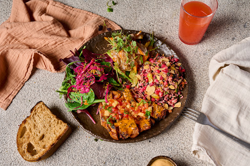 Estou muito feliz por ter descoberto este restaurante! Desde que passei por lá e experimentei, fiquei viciada e agora peço constantemente em casa. Meu prato favorito é o Wild Mediterranean Bowl, a combinação de molhos e sabores é incrível. Sempre adiciono o salmão grande ou o frango, ambos são absolutamente deliciosos. As entradas de homus e batata-doce também são excelentes, e eu adoro especialmente o ketchup de beterraba que acompanha as batatas-doces. O kombucha misto deles é outro favorito, leve, refrescante e não muito doce. De sobremesa, experimente o brownie de tahine e o cheesecake de matcha.