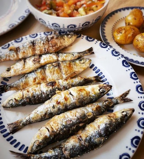 * as sardinhas grelhadas, que estavam deliciosas.