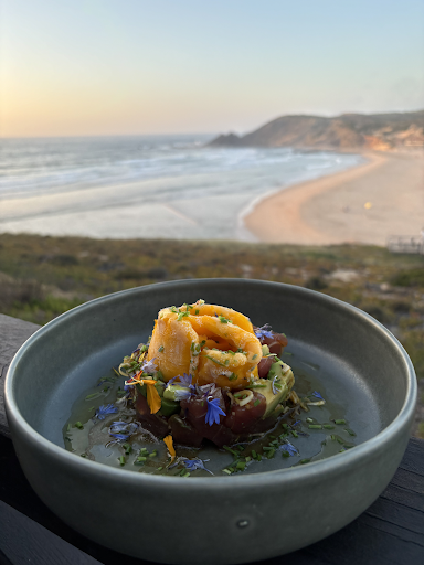 Ficamos absolutamente encantados com a nossa visita! A comida estava deliciosa. A localização é simplesmente imbatível – com uma vista deslumbrante para o oceano e os surfistas, você imediatamente se sente como se estivesse de férias. Gostaríamos de destacar especialmente o serviço acolhedor e atencioso. Outro ponto positivo: cães são bem-vindos e foram tratados com o mesmo carinho que nós. No geral, uma experiência maravilhosa – com certeza voltaremos!