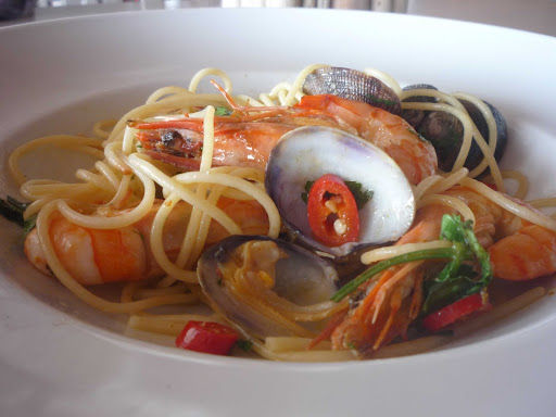 A comida é deliciosa, mas perde uma estrela porque a salada de polvo era metade cebola crua, e os camarões-rei do menu regular, embora muito saborosos, eram um pouco pequenos, custando € 36 por dois, então não representavam um bom custo-benefício.