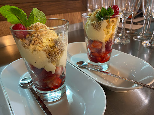 A comida: o pargo enorme e fesquíssimo; a generosa taça de morangos e o Cheesecake que se derrete na boca... todos 5 ⭐.