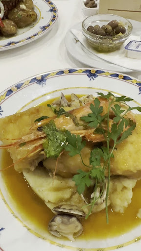 A comida, especialmente o bacalhau, é excepcional. Experimentei o bacalhau com queijo da Serra da Estrela, perfeitamente cozinhado e cheio de sabor, e as entradas estavam igualmente deliciosas.