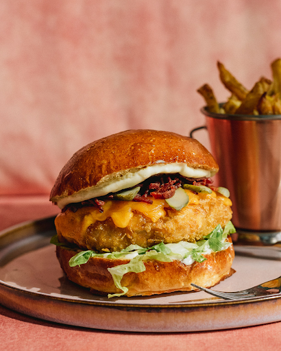 Viemos do hospital e queríamos algo para nos virar, mas em vez disso recebemos dois hambúrgueres fantásticos, lindamente preparados, muito saborosos, acompanhados de uma das melhores batatas-doces fritas que já comi nos últimos tempos. A sobremesa também foi um cheesecake de baunilha bem diferente.